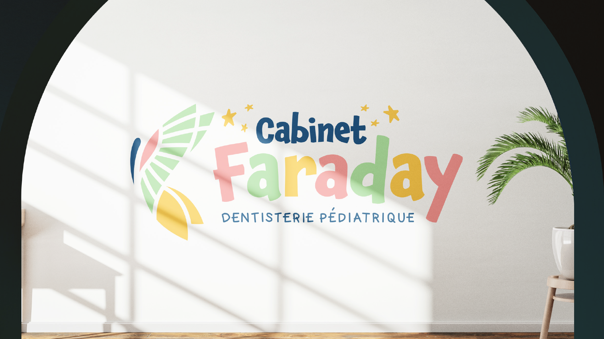 Le Cabinet Faraday est un défi créatif ! Tout en respectant la demande d’une identité cohérente avec les couleurs décidées pour habiller le cabinet, il fut nécessaire de développer une identité riche en couleurs chaleureuses (rappelant le Mexique) et sympathique pour les familles.